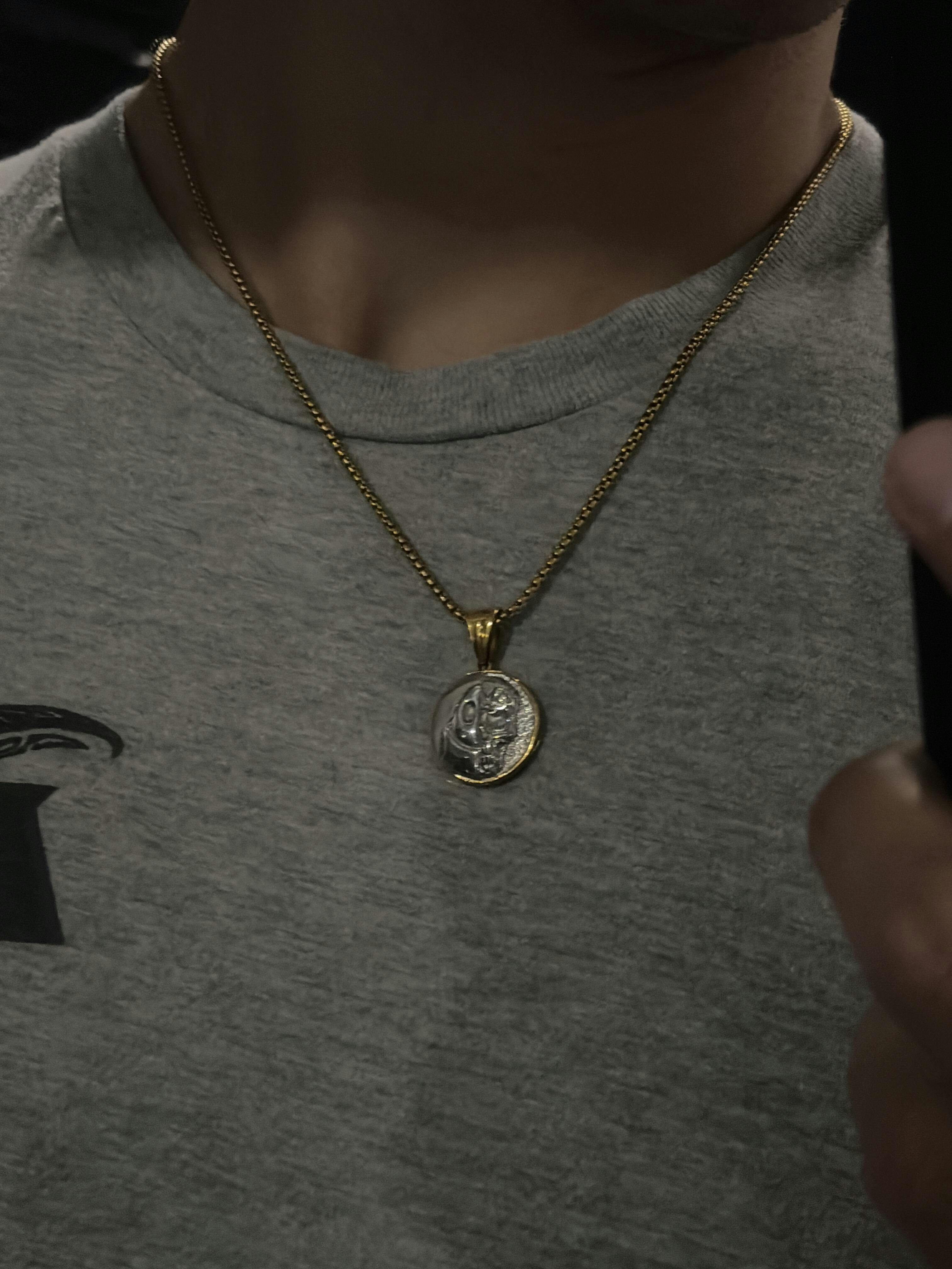 Received mine today. Other than wanting a thicker chain, I like the look of it. Was hoping the medallion was all black too, but that is aesthetics. I like how this looks. Deciding which chain to put it on.