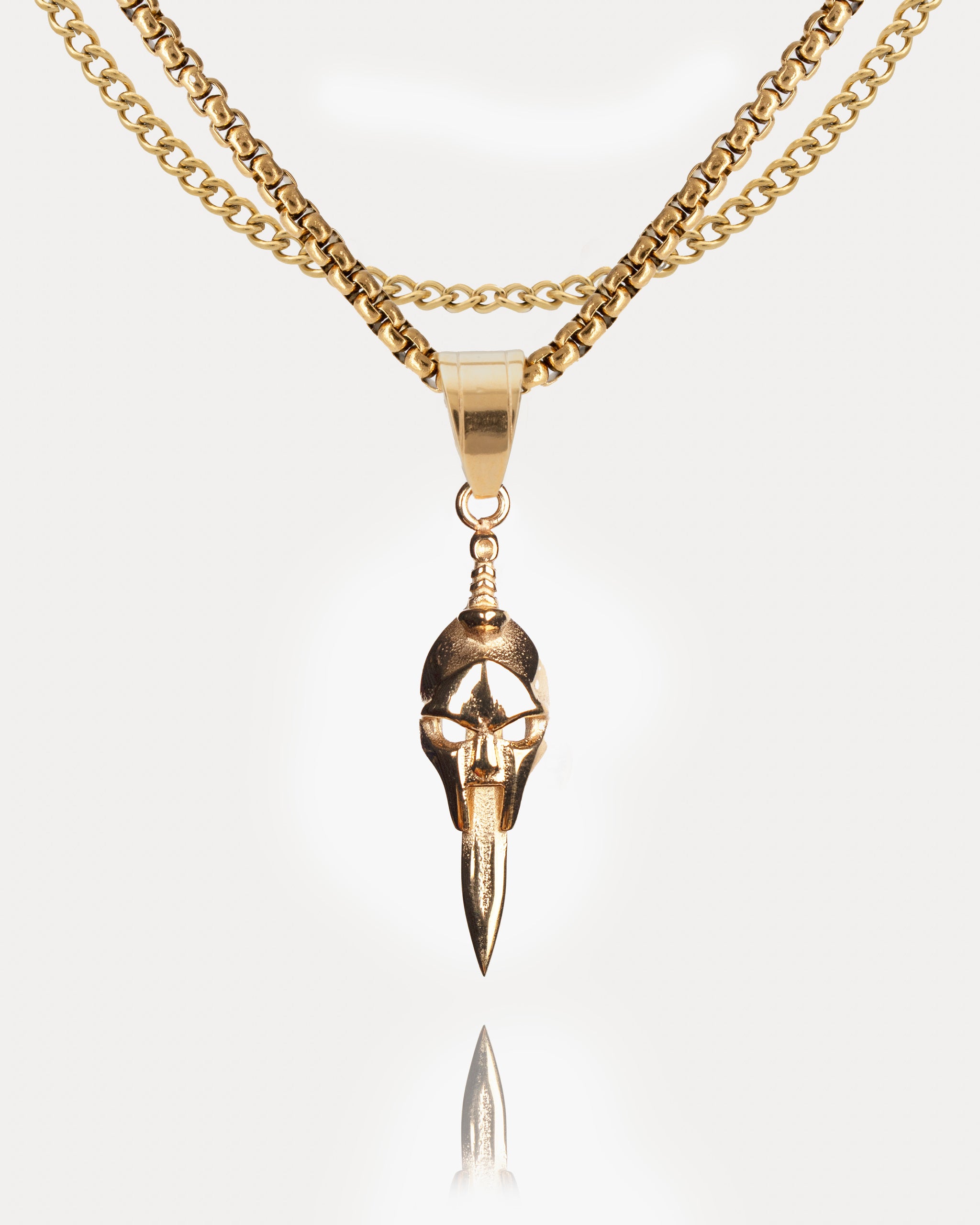 • Custom pendant featuring a warrior helmet combined with a dagger.